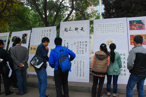 为全面展现天游线路官网学子艺术风采,丰富师生校园文化生活,天游线路官网第二届书画摄影展在教学10号楼A区前学校主干道如期举行。