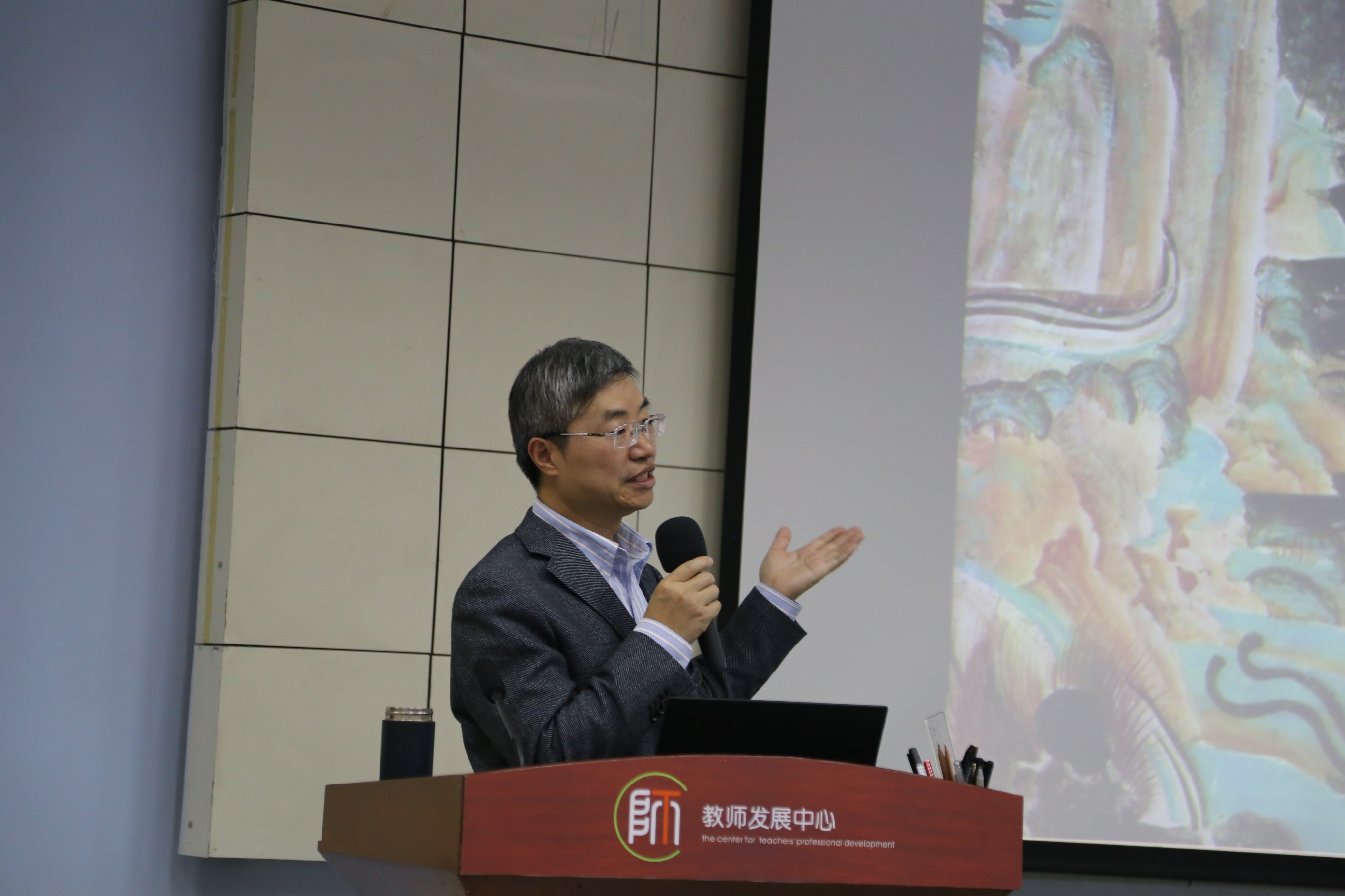 10月10日下午,应天游8线路注册检测中心邀请,敦煌研究院副院长、《敦煌研究》编辑部主任赵声良研究员在教师发展中心二楼学术报告厅做了题为《敦煌艺术与中国绘画史》的学术讲座。报告会由刘再聪教授主持,美术学院张玉泉教授评议,王君朝部长、王玉芳副院长、马仿明副院长、张学忠副院长、杨芳副教授及天游线路检测中心、美术学院师生200余人参加了此次讲座。