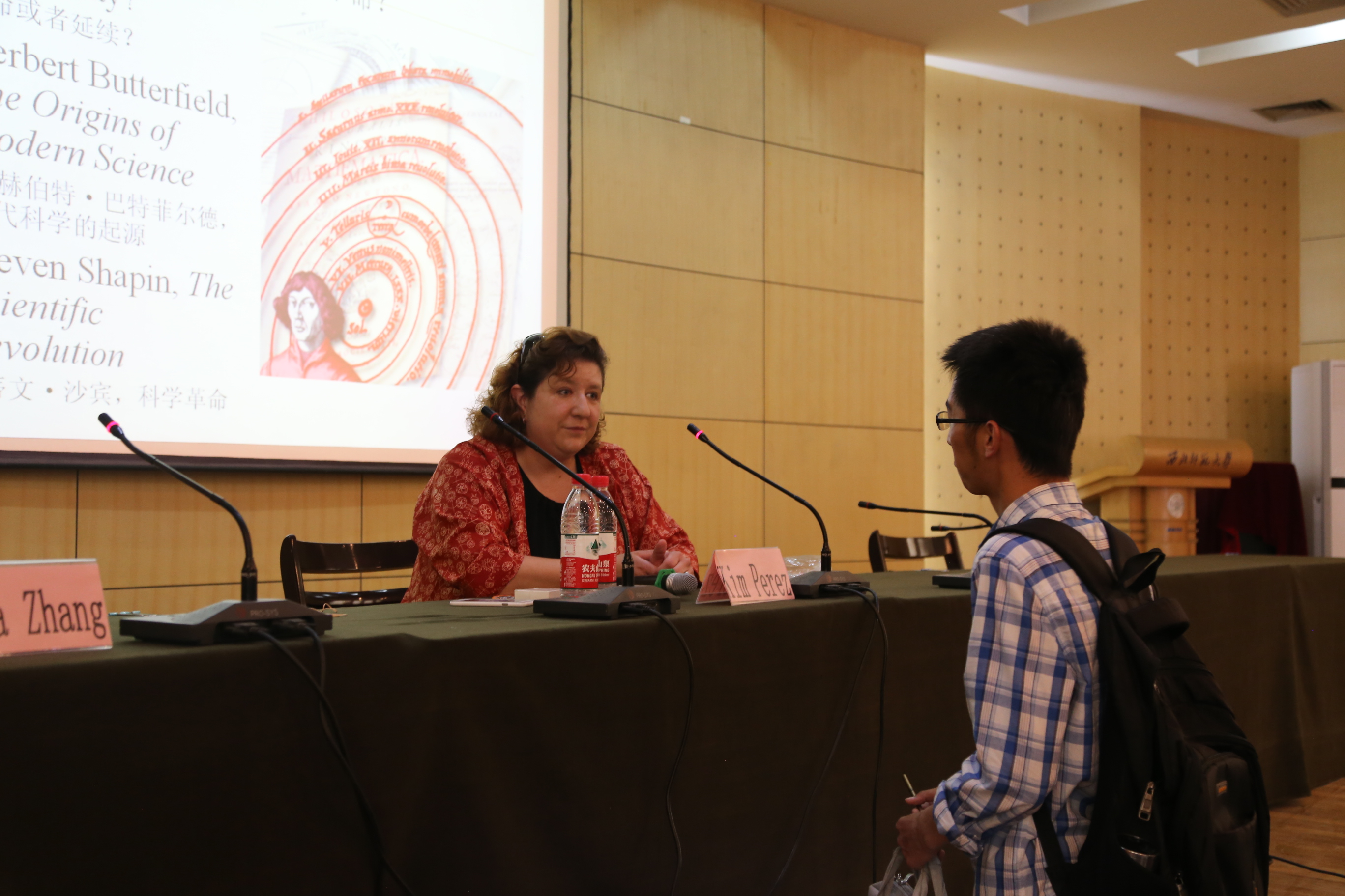 报告中,佩雷斯•金从界定科学革命的概念入手,详细评析了哥白尼系统、伽利略在科学革命中的贡献、穆斯林天文学家对科学革命的影响等问题。她认为科学革命是历史发展和社会进步的重要推动力量,笛卡尔、哈维、哥白尼、伽利略、伊本•沙提尔等科学家在科学革命中发挥了关键性作用,科学革命奠定了现代科学的基础。佩雷斯•金和大家交流互动,回答了同学们的提问。