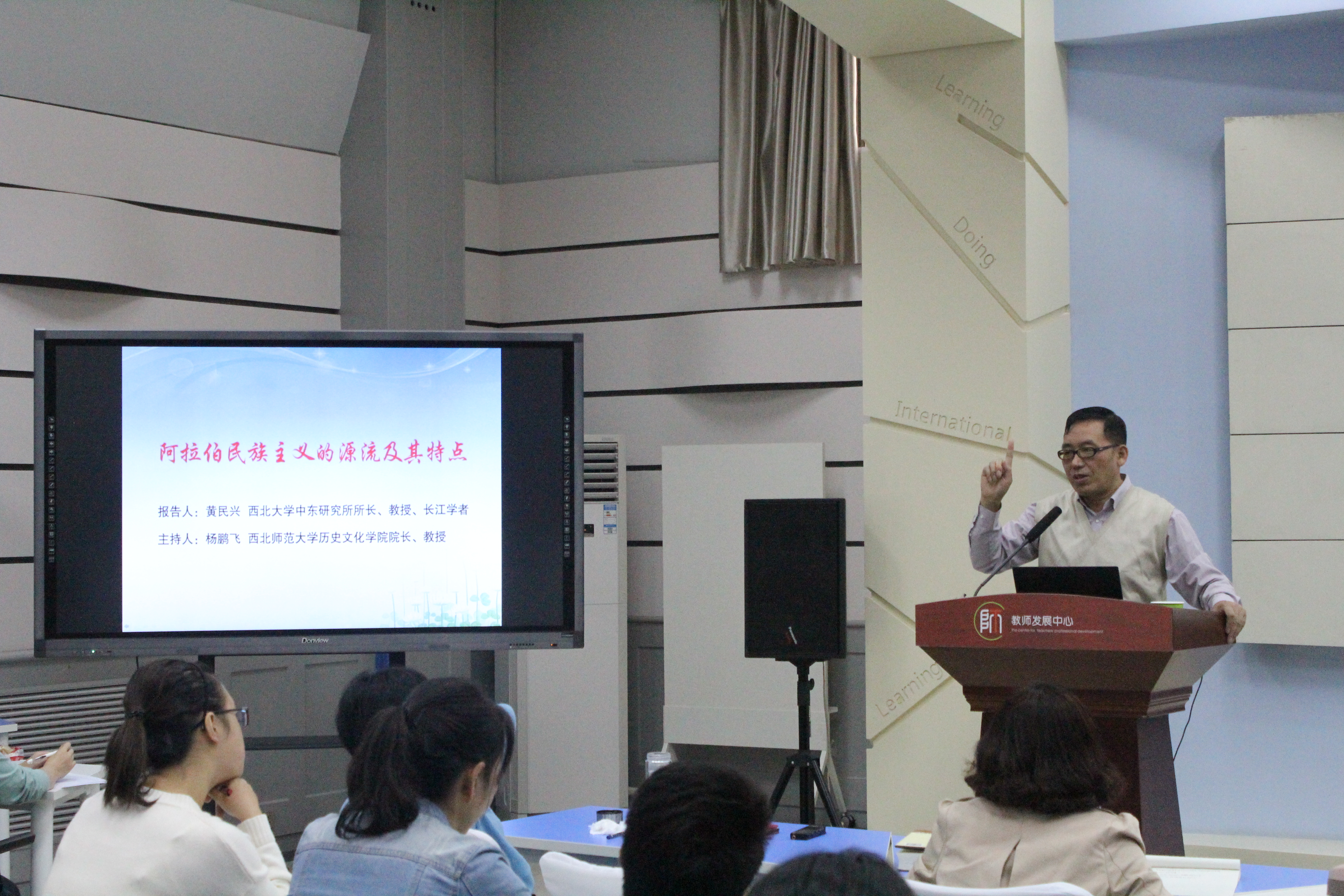 2017年9月25日上午10点,应天游线路检测中心邀请,“长江学者”、西北大学中东研究所所长黄民兴教授在教师发展中心二楼报告厅作了题为“阿拉伯民族主义的源流及其特点”的学术报告。报告由天游线路检测中心院长杨鹏飞教授主持,李积顺老师、李家莉老师、连菊霞老师、张玉霞老师、张嵘老师、吕海军老师以及研究生、本科生150余人聆听了报告。