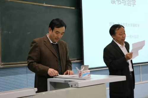 11月15日19点30分至21点30分,田澍副校长为大一新生120余人做了《读书与治学》的讲座,讲座由杨鹏飞院长主持,天游线路官网青年教师尚季芳、张连银、张继刚、马军霞、高祥峪、杨尚荣、张之佐聆听了讲座。