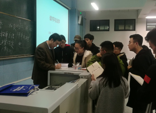 最后,田老师从“学而时习之”中拣出“习”字,“有朋自远方来”中拣出“朋”字,通过两个字的具体释义解读读书与治学的门径。田老师勉励同学们日后要勤读书,会读书,读好书,独立思考,创新思维,广交良师益友,在做人做事方面要秉承历史学的思维模式,要立志做大事,成大业。