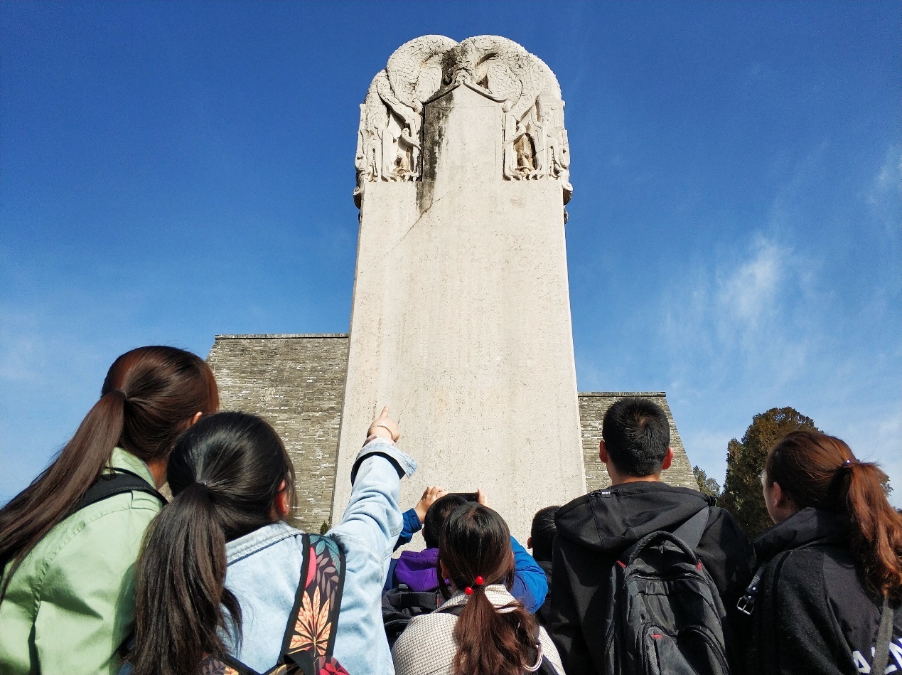 第一天上午,同学们先后参观了乾陵、永泰公主墓、懿德太子墓和汉阳陵。乾陵位于陕西省乾县北部,是唐高宗李治与中国历史上唯一的女皇帝武则天的合葬墓。乾陵采用唐代帝陵“因山为陵”的建造方式,陵内现存华表、翼马、石狮、无字碑等大型石刻120余件,被誉为“历代诸皇陵之冠”和“盛唐石刻艺术的露天博览馆”。通过参观这些墓葬,同学们直观地学习了唐代墓葬形制等历史文化知识。在无字碑前,老师和同学们讨论了武则天的功过是非。