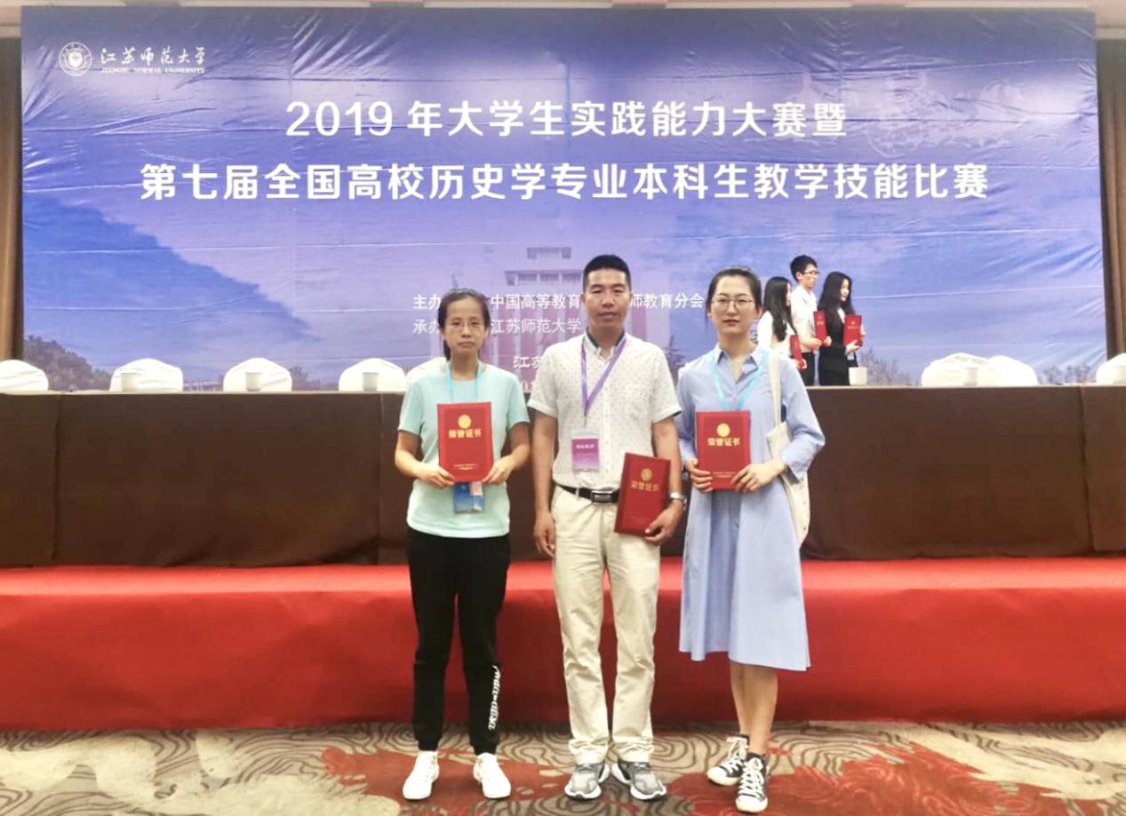 七月盛夏,骄阳似火,水城内外,绿意盎然。7月21日至24日,2019年大学生实践能力大赛暨第七届全国高校历史学专业本科生教学技能比赛在江苏师范大学举行。天游线路官网派出了3名选手参加比赛,在张继刚老师的精心指导和带领下,历经三个月的反复锤炼和努力拼搏,最终不负众望,取得了优异成绩。经过激烈的角逐,王青同学获得说课组二等奖,王静宜同学获得讲课组三等奖,张继刚老师荣获优秀指导教师奖。