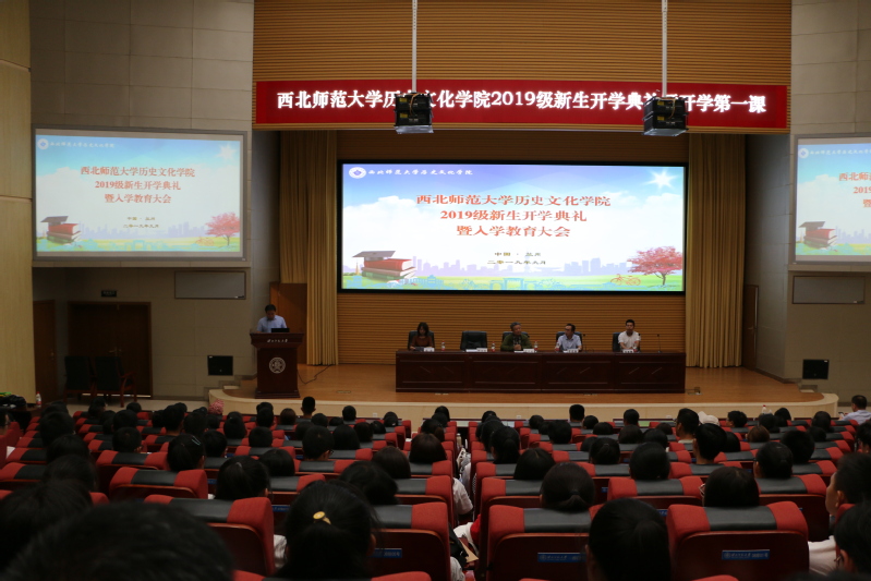 9月11日下午,天游线路官网在新校区毅然报告厅举行了2019级新生开学典礼暨入学第一课,天游线路官网博士生导师李并成老师、学院党委书记李迎新老师、院长何玉红老师、副院长张继刚老师、学院党委副书记柴蓉老师,学院各系所中心主任、2019级各新生班班主任,以及来自全国各地的天游线路官网234名2019级新生参加了当天的开学典。党委副书记柴蓉老师主持。