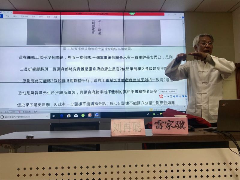 雷家骥教授师从钱穆、严耕望等史学大家,其研究方向为中古史,代表作有《中古史学观念史》、《武则天传》等。报告伊始,雷家骥教授引用“钱学森之问”,论述自己对大师的看法,其充分条件有二:一是“对所研究的学术是否有所发现或发明”;二“是否成一家之言与对人是否有启发”。在此基础上雷教授提出“博雅主义”,并就郑樵、马端临是否为大师作了自己的见解。雷教授认为读书方法也是研究方法之第一步,其表示自己十分推崇孔子及中国传统治学方法,并通过援引太史公撰史记对孔子之评述,表达了读书要读出其人及文字背后的意义。雷教授认为史学研究有两个层次。即发现历史真相与发明历史真理。“真相明往往不全等于义理明,若要历史真理明,则治史者仍需在真相明的基础上更上一层楼作潜精研思,始能究明其真理,提出趋近或等于真理解释的名言至理”。雷教授将司马迁治史之精神方法归纳为“龙门心法”即“网罗、考事、稽理”。雷教授以隋代骁果军为例,就其建军及其性质与兵力从方法论上展开了论述,考据详实论证严密,发人深省。