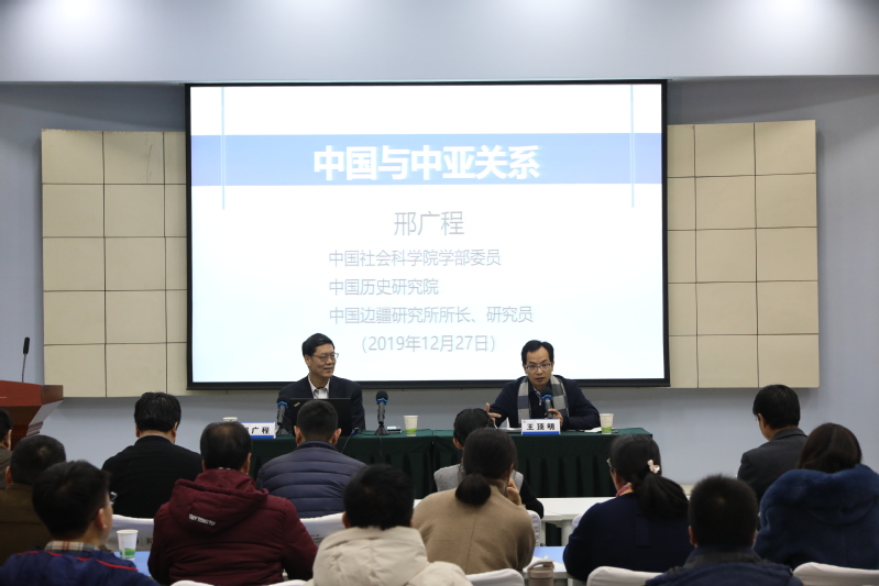 2019年12月27日,应天游8线路注册检测中心中亚研究院、天游线路检测中心邀请,中国社会科学院学部委员、中国边疆研究所所长邢广程研究员在教师发展中心二楼报告厅作题为《中国与中亚关系》的学术报告,来自天游线路检测中心、法学院、外国语学院、旅游学院、商学院、国际文化交流学院、地理与环境学院的120余名师生参加。报告会由我校副校长王顶明教授主持。
