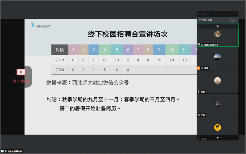 在对学生进行动员后,由学院就业工作辅导员曾磊对近期的就业招聘信息、大学毕业生应征入伍政策及毕业生就业手续办理流程等相关事项向学生进行了说明。此外,学院辅导员王浩将就业信息获取、就业准备等内容对学生给予了指导。最后,会议邀请了2020届毕业生张敏、杜亚茹、郝婷婷、李琼琼四位同学将其求职经验及作了分享。