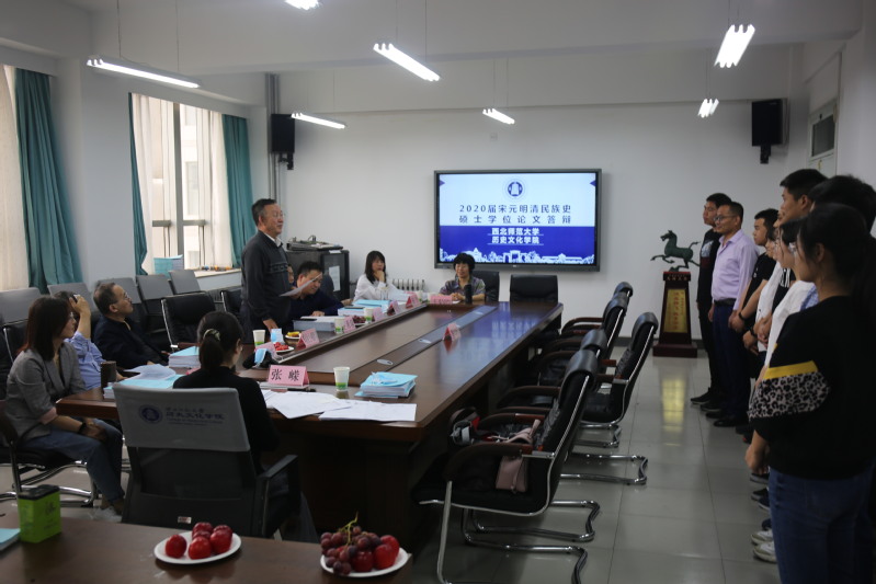 在陈述环节,宋元明清民族史方向硕士研究生张晓航、杜亚茹、岳凯峰、吴丽萍、戴宗凯、杨义辉、李洋洋、赵丽霞、贾学林、李旭明、孙佳琪等十一位同学依次就论文选题、结构、创新等问题进行陈述,然后由答辩委员对论文中的问题进行评议。