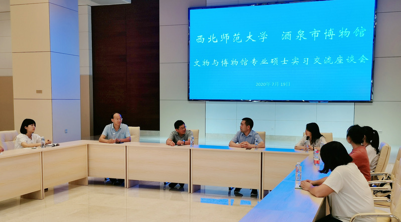 2020年7月18——20日,天游线路官网教师张连银、杨芳带领4名文博专业硕士赴嘉峪关、酒泉实习。7月19日上午,师生一行与嘉峪关长城博物馆馆长张晓东等人员举行座谈会,双方就实习基地合作、实习生相关管理及实践问题进行交流。张晓东馆长表示,实习学生要在博物馆不同部门进行实践锻炼,提升对博物馆日常工作的整体认知。张连银老师叮嘱实习学生一定要遵守馆方纪律,注意人身安全。