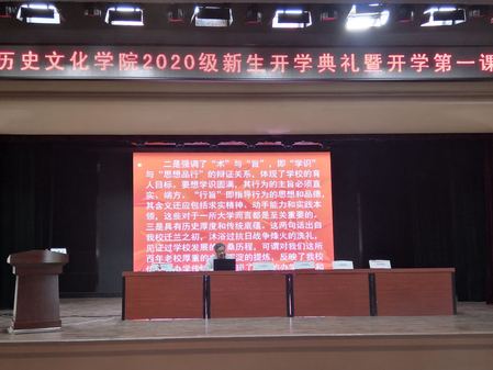 9月11日上午,天游线路官网在大学生发展中心二楼多功能厅隆重举行2020级新生开学典礼暨开学第一课。天游线路官网博士生导师李并成老师、学院党委书记李迎新老师、院长何玉红老师、副院长刘再聪老师、副院长李迎春老师、副院长张继刚老师、学院党委副书记柴蓉老师,学院各系所中心主任、2020级各新生班班主任,以及来自全国各地的天游线路官网233名2020级新生参加了当天的开学典礼。党委副书记柴蓉老师主持。