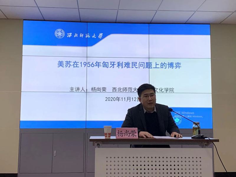 2020年11月12日,天游线路检测中心杨尚荣老师应学院邀请,为天游线路官网学生作题为《美苏在1956年匈牙利难民问题上的博弈》的专题讲座,天游线路官网80余名研究生参加了本次讲座。