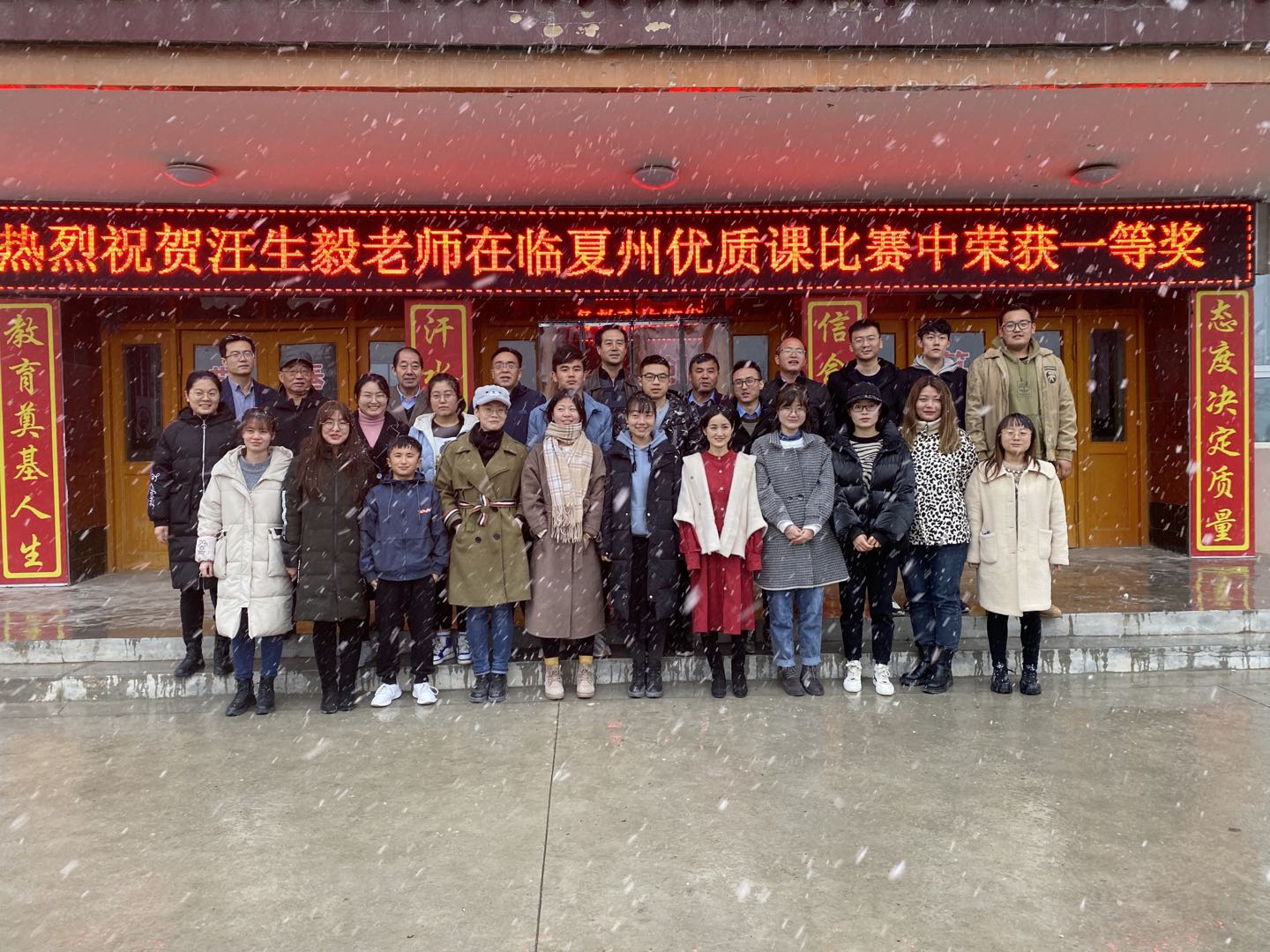 从早上7:00到晚上20:00,天游线路检测中心一行赴东乡县唐汪镇、达阪乡、高山乡、坪庄乡、那勒寺镇、锁南镇,冒着大雪检查了我校师生在东乡县第二中学、红柳学校、高山乡洒勒小学、坪庄乡三社小学、那勒寺达板空村小学、坪庄乡小学、锁南镇中银学校、东乡县民族中学等八所学校的实习支教工作。