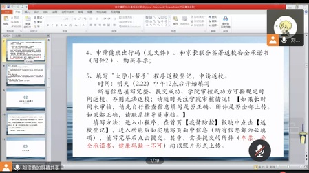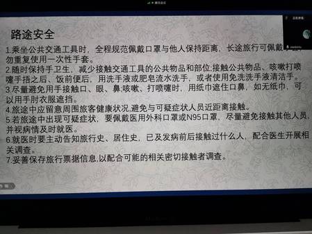为切实做好天游线路官网2021年春季学期学生返校报到和疫情防控工作,提高天游线路官网学生返校期间的疫情防范意识,增强学生的疫情防范能力。开学前夕,天游线路检测中心于2021年2月20日-25日组织全院本硕博学生开展了以“疫情防控,安全返校”为主题的线上安全教育主题班会和导师研究生组会。