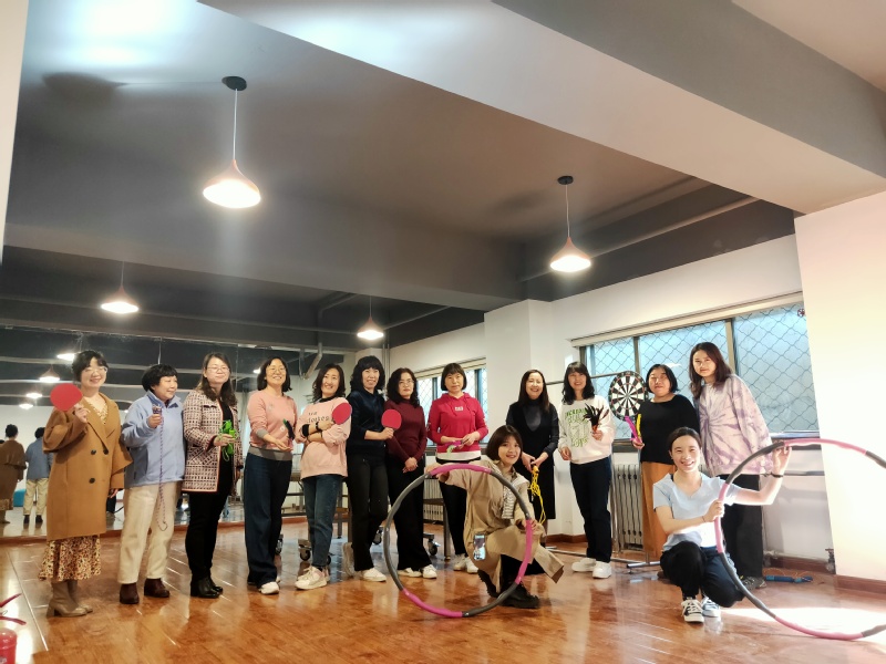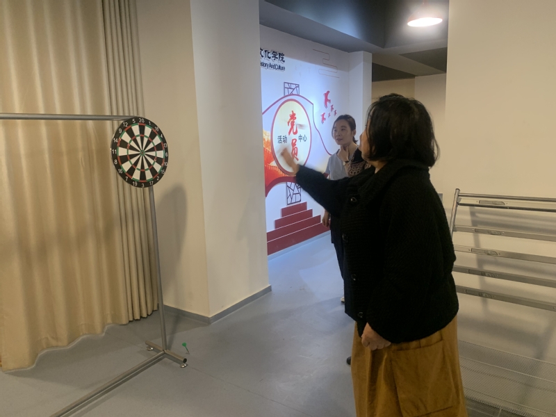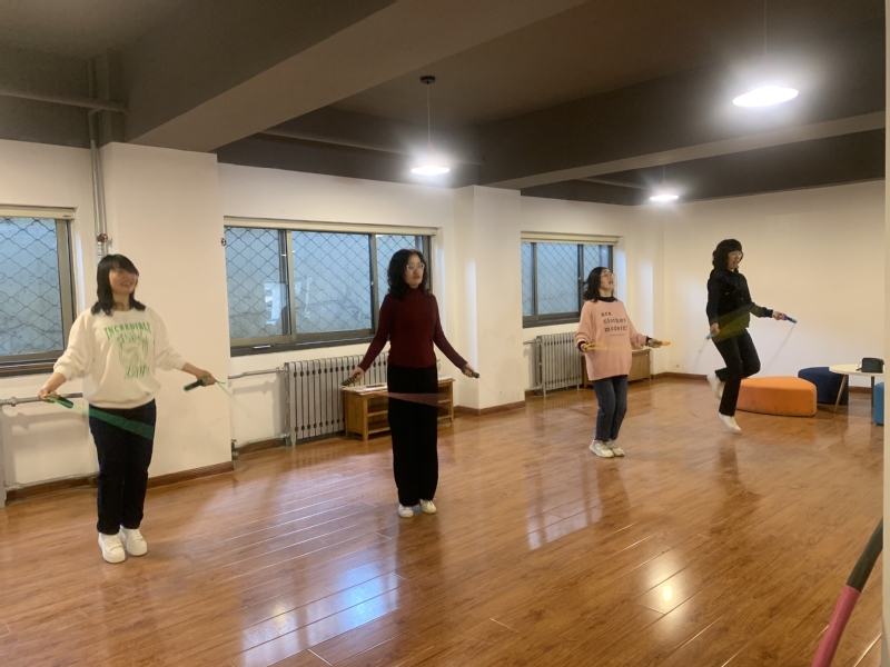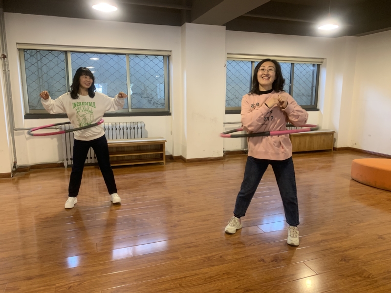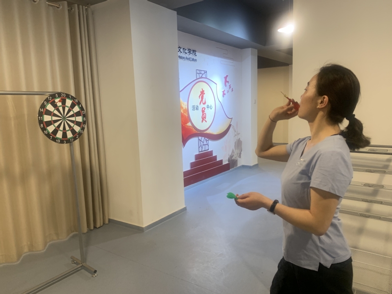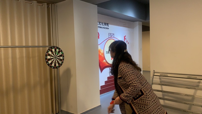 本次竞赛分为踢毽子、转呼啦圈、跳绳、扎飞镖、打乒乓球五个项目。各位老师根据自己的兴趣3-4 人自由组合踊跃参加比赛,现场氛围活跃,互动交流热烈。