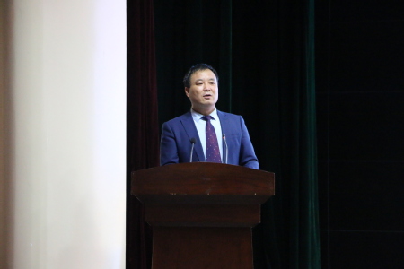 在雄壮的国歌声中,典礼拉开了帷幕。何院长在致辞中,对学院的师资概况、学科特点优势、教学工作等方面作了详细介绍,并向同学们介绍了学习历史的三种方法:学知识和学做人相结合;过去和未来相结合;坐冷板凳和学新技术相结合。希望同学们认真学习历史,传承历史,发扬历史。