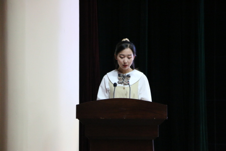 “敢于突破自我,积极参加学校学院组织的各类丰富多彩的校园文化活动、社会实践活动、志愿服务活动,给自己更多的平台,展现自己,迎接挑战,实现质的飞跃。”2021级新生代表贾媛媛同学号召新同学们为“究天人之际、通古今之变、成一家之言”而努力,为实现中华民族的伟大复兴而奋斗。
