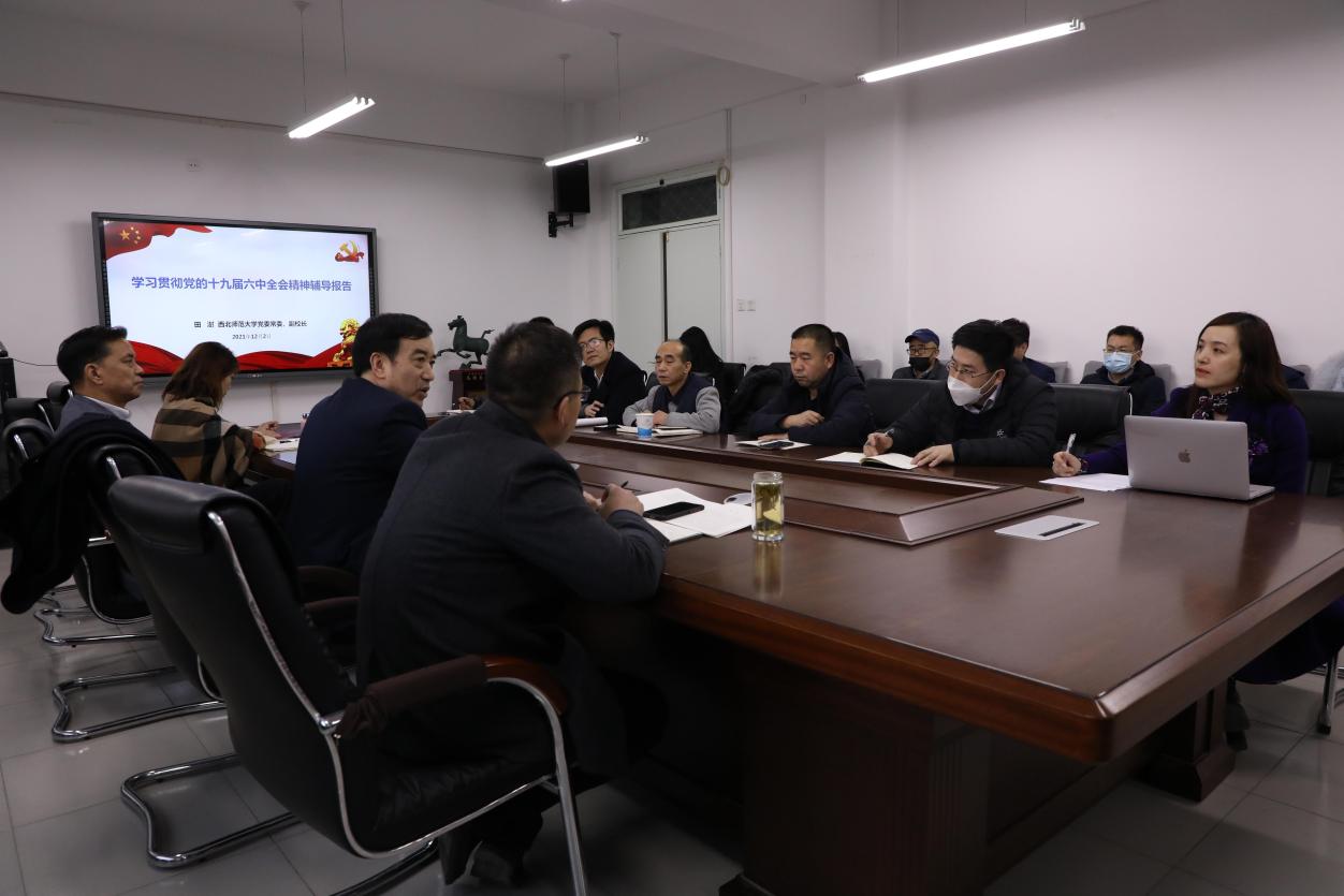 2021年12月2日下午,天游8线路注册检测中心党委常委、副校长田澍教授在田家炳教育书院314会议室为天游线路检测中心作党的十九届六中全会精神专题辅导报告,学院全体教职工参加了报告会。报告会由天游线路检测中心党委负责人主持。