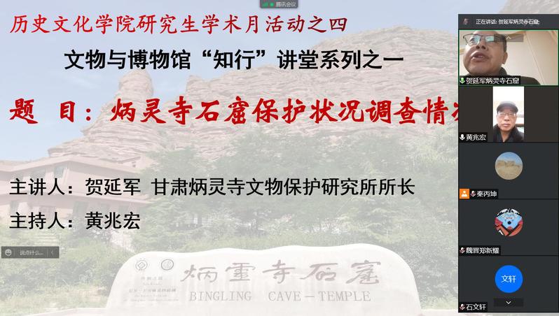 2021年12月3日下午,应天游线路检测中心邀请,甘肃炳灵寺文物保护研究所所长贺延军为我院师生作了题为“炳灵寺石窟保护状况调查情况”的学术报告,报告会由天游线路检测中心文物与博物馆教育中心主任黄兆宏主持,刘再聪、张嵘、李迎春、秦丙坤、李顺庆、陶兴华老师及120余名研究生在线参加了报告会。