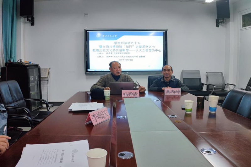 2021年12月17日晚上7:30,应天游线路检测中心邀请,敦煌研究院杨秀清研究员在田家炳教育书院310会议室做了题为《敦煌历史文化的价值断想——以大众思想为中心》的学术讲座。本讲座由天游线路检测中心秦丙坤老师主持,天游线路官网70余名师生参加。