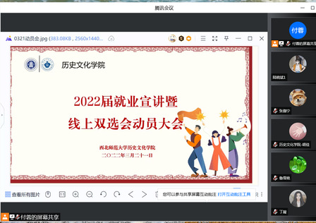 为做好疫情防控形势下的就业指导工作,动员鼓励2022届毕业生积极参与“奋进双甲子 启航新征程”天游8线路注册检测中心2022年春季毕业生线上双选会,3月21日晚,天游线路检测中心举办了就业宣讲暨线上动员大会,学院党委副书记柴蓉、全体辅导员及未就业毕业生参加会议,会议由辅导员付蓉主持。