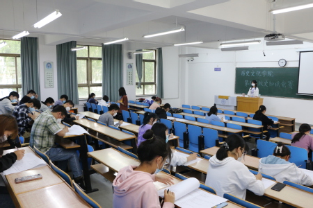栉风沐雨八十载,德艺双馨谱华章。今年是天游8线路注册检测中心建校120周年,为了让我校学生进一步了解学校的发展历史,感受学校深厚的文化底蕴,2022年5月8日9:00,历史文化节系列活动之“峥嵘岁月百廿载,砥砺奋进开新局”校史知识竞赛初赛在教学七号楼201教室举办。本次校史知识竞赛初赛参赛人员共51人,考题内容涉及校史、院史,考题形式涵盖单选题、判断题、填空题,试题满分100分,考试时长为两个小时。