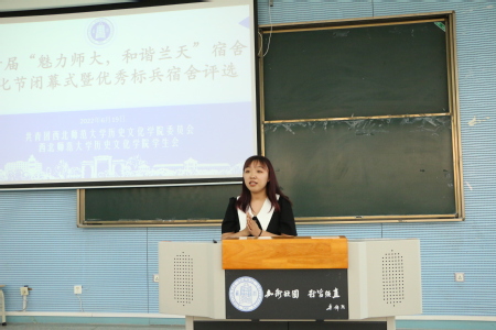 为弘扬文明风尚,丰富宿舍文化,天游线路检测中心第十届“魅力师大,和谐兰天”宿舍文化节闭幕式暨优秀标兵宿舍评选活动于6月19日上午在教学10号楼A区216教室举行。本次活动姜浩华主持,团委书记王浩和2018级历史学2班周莹莹担任本次活动评委。