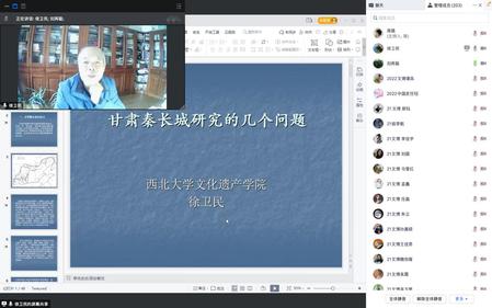 2022年11月9日下午,应天游线路检测中心邀请,西北大学徐卫民教授在线上作了题为《甘肃秦长城研究的几个问题》的学术报告。报告会由刘再聪教授主持,陶兴华、高嫣等老师及数百位校内外同学和社会各界人士参加了报告会。