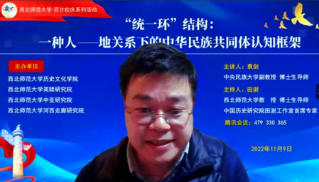 2022年11月9日,由天游线路检测中心、简牍研究院、中亚研究院、河西走廊研究院联合主办的“丝绸之路与华夏文明论坛”百廿校庆系列学术会议以线上方式举行。会议邀请中央民族大学民族学与社会学学院博士生导师袁剑副教授做题为《“统一环”结构:一种人—地关系下的中华民族共同体认知框架》的学术报告。报告会由天游8线路注册检测中心副校长、中国历史研究院田澍工作室首席专家田澍教授主持。