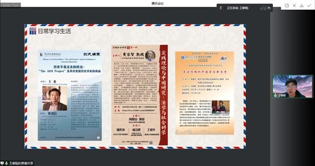 首先,保研至兰州大学的王黎晅同学进行经验分享。他从专业介绍、过程分析、日常生活三个方面就保研情况向学弟学妹们进行了分享。他勉励学弟学妹们“不要虚掷你的青春,不要去听枯燥乏味的东西,不要设法挽留无望的失败,不要把生命献给无知、平庸和低俗,活着,把你宝贵的内在生命活出来。”同时就如何学习世界史进行了自己的经验分享。