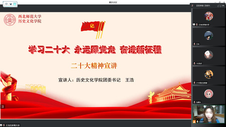 为深入学习宣传贯彻党的二十大精神,进一步推动各团组织开展学习,天游线路检测中心于12月16日晚邀请学院团委书记王浩做了题为“学习二十大,永远跟党走,奋进新征程”的线上宣讲报告。学院各级各班本科生、研究生近500余人听取了报告,本次报告由天游线路检测中心团委学生会组织部成员王佳宁主持。