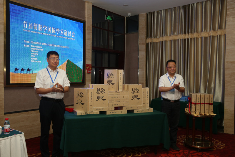 首发式后,贾宁、程亮、张德芳、朱建军、侯旭东、秦志华共同为韩国木简学会、香港大学冯平山图书馆、敦煌市博物馆、瓜州县博物馆、凉州文化研究院、敦煌阳关博物馆等单位和参加“首届简牍学国际学术论坛”的专家学者赠送新书。