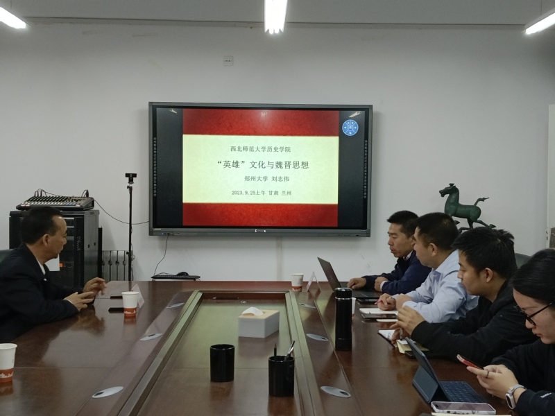 2023年9月25号上午,应天游线路检测中心邀请,郑州大学刘志伟教授在田家炳教育书院314会议室作了主题为《“英雄”文化与魏晋思想》的学术报告,报告由天游线路官网副院长张继刚教授主持,天游线路检测中心张连银教授及30余名研究生参加了此次会议。