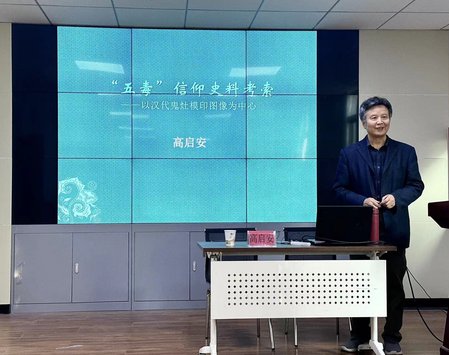 2023年10月30日下午,应天游线路检测中心邀请,甘肃省敦煌学学会副会长、兰州财经大学教授、天游8线路注册检测中心兼职教授高启安教授来天游线路官网作题为《“五毒”信仰史料考索——以汉代鬼灶模印图像为中心》的学术报告。本次报告由天游线路检测中心秦丙坤教授主持,刘再聪院长、李并成老师以及50余名研究生聆听报告并参与讨论。
